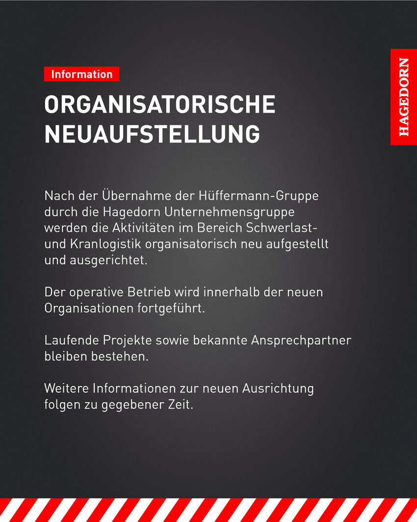 Komplettanbieter Hüffermann Gruppe rund um Kran, Schwerlast Spedition, Projekt Engineering